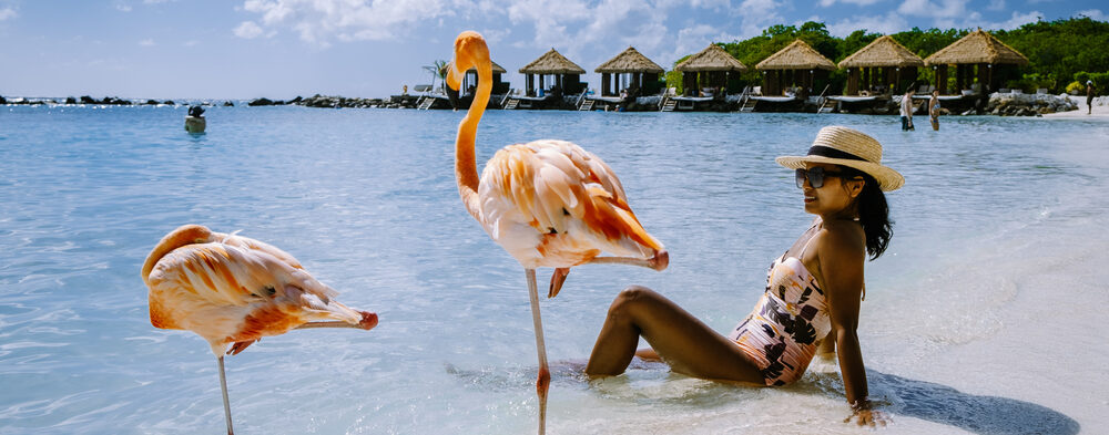 Aruba egy igazán boldog sziget, vagyis „One Happy Island”. A kicsiny karibi sziget nagyszerű élményekkel csábítja a púderhomokú strandok, a ragyogó szállodák és az érintetlen természeti szépségek rajongóit. A legtöbben természetesen a flamingók miatt érkeznek a szigetre. Hihetetlenül szép a napágyak között kecsesen sétáló gyönyörű madarak látványa.